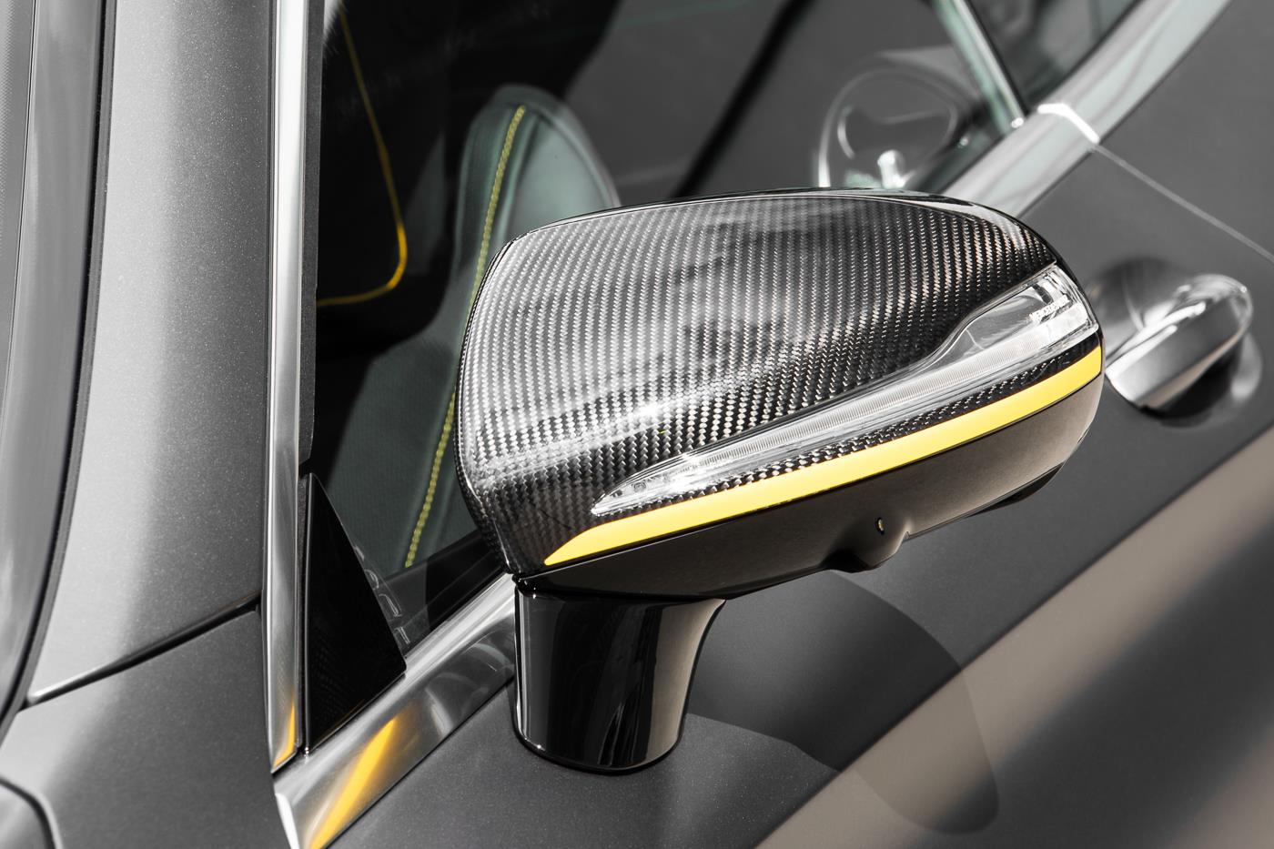 インテリアは Designo Exclusiveナッパレザーを用いたブラックレザシート&特注専用イエローステッチ&パイピング、特注専用マットカーボンインテリアトリム(シートヒーター&シートエアコン付)が装備されております。