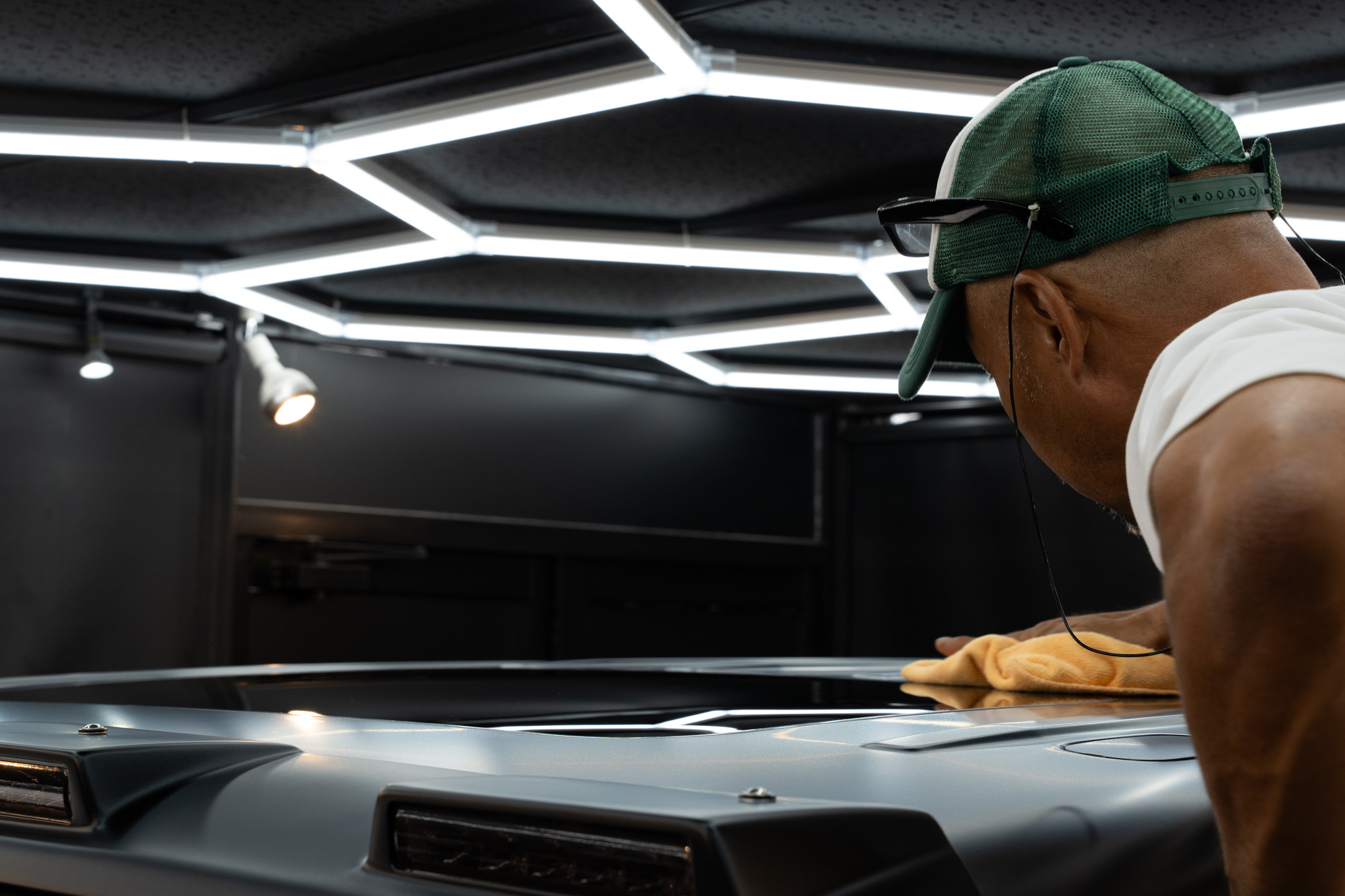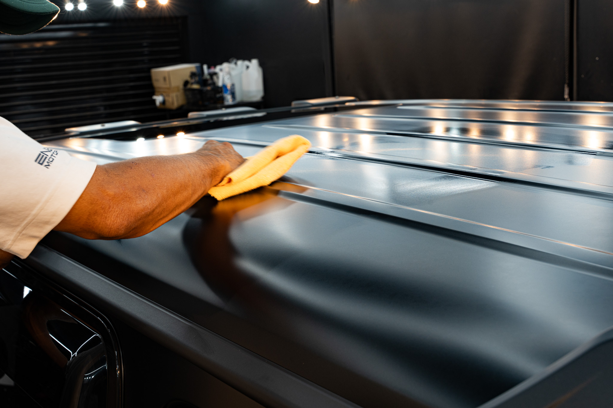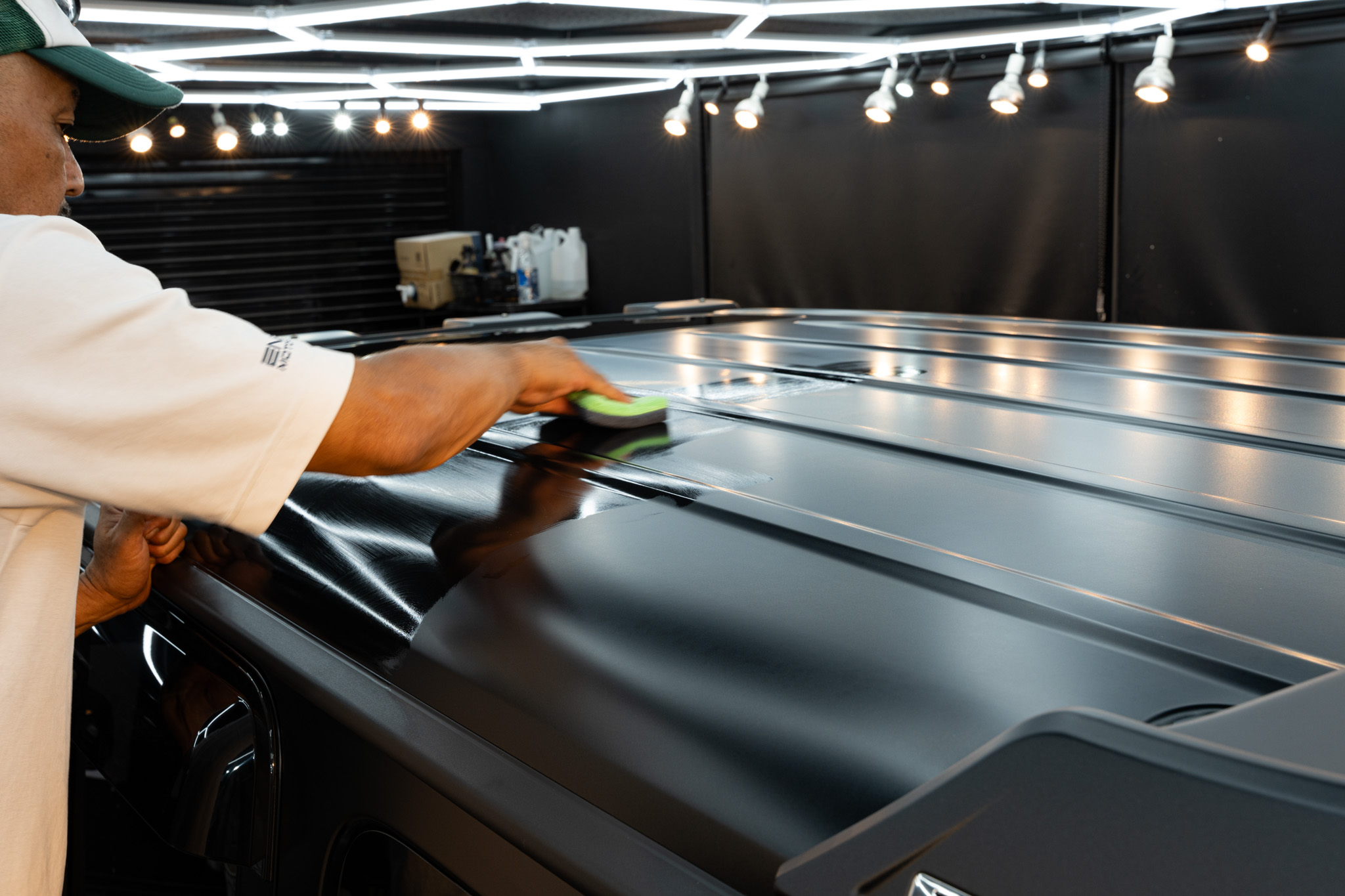 ディティーリングチームにより、現在、セラミックコーティング施工前の下処理(洗浄)が完了し、セラミックコーティング施工を開始しております。