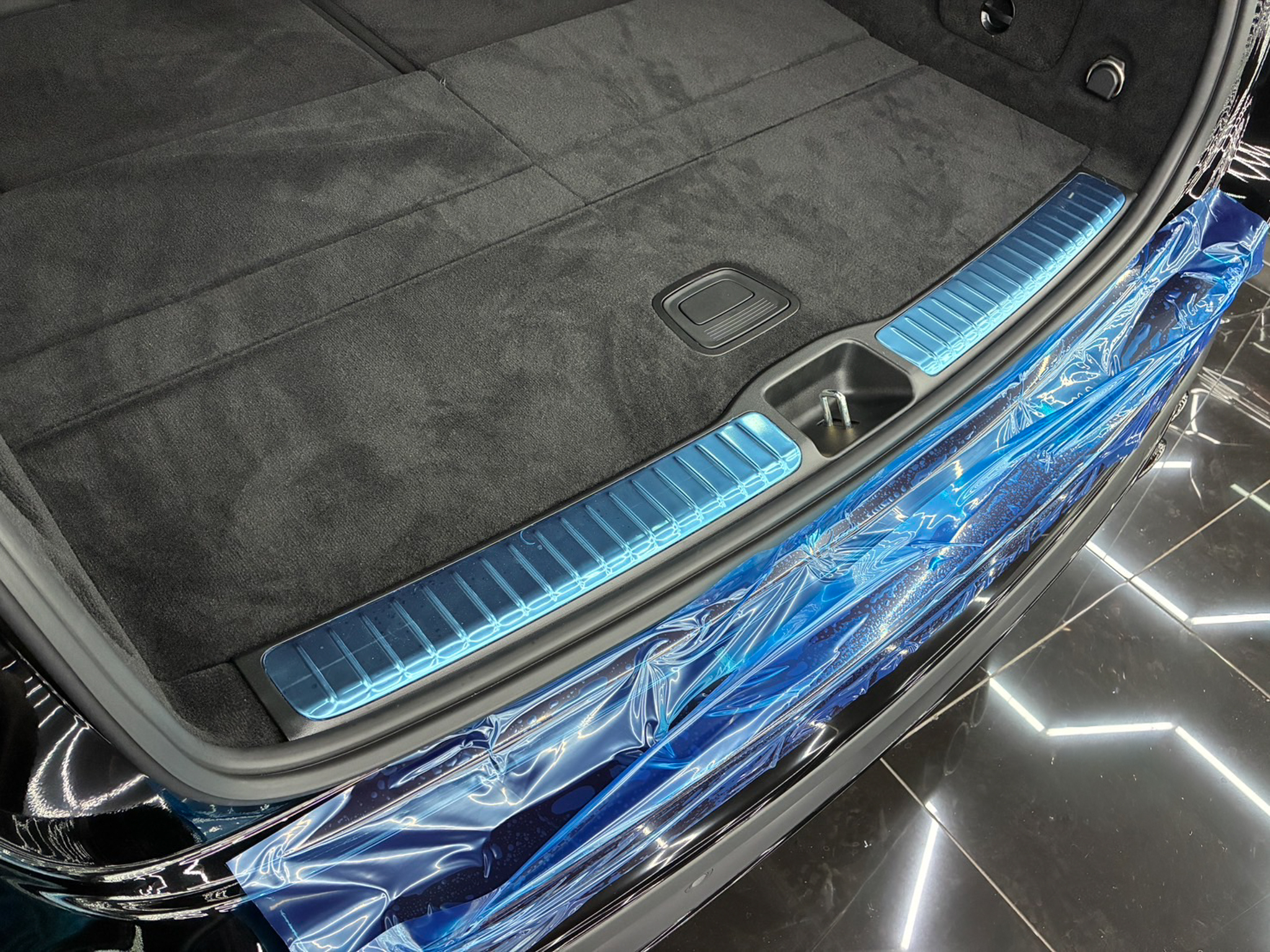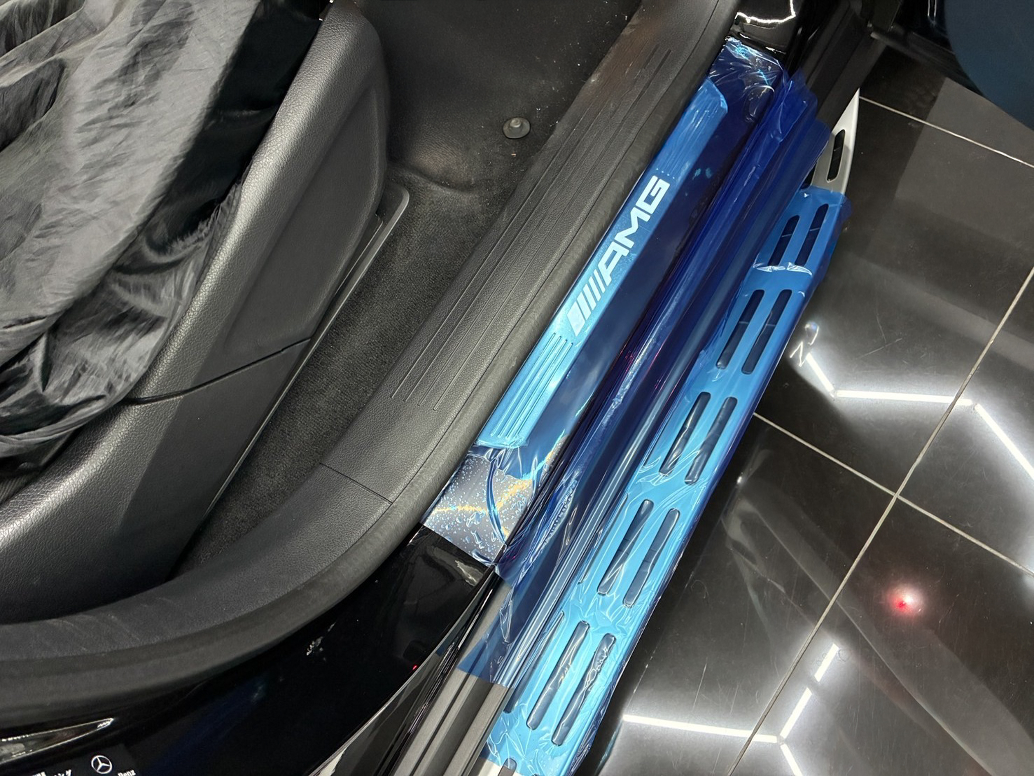運転席・助手席サイドステップ・リアゲートステップに養生テープを貼り、作業を行って参ります。