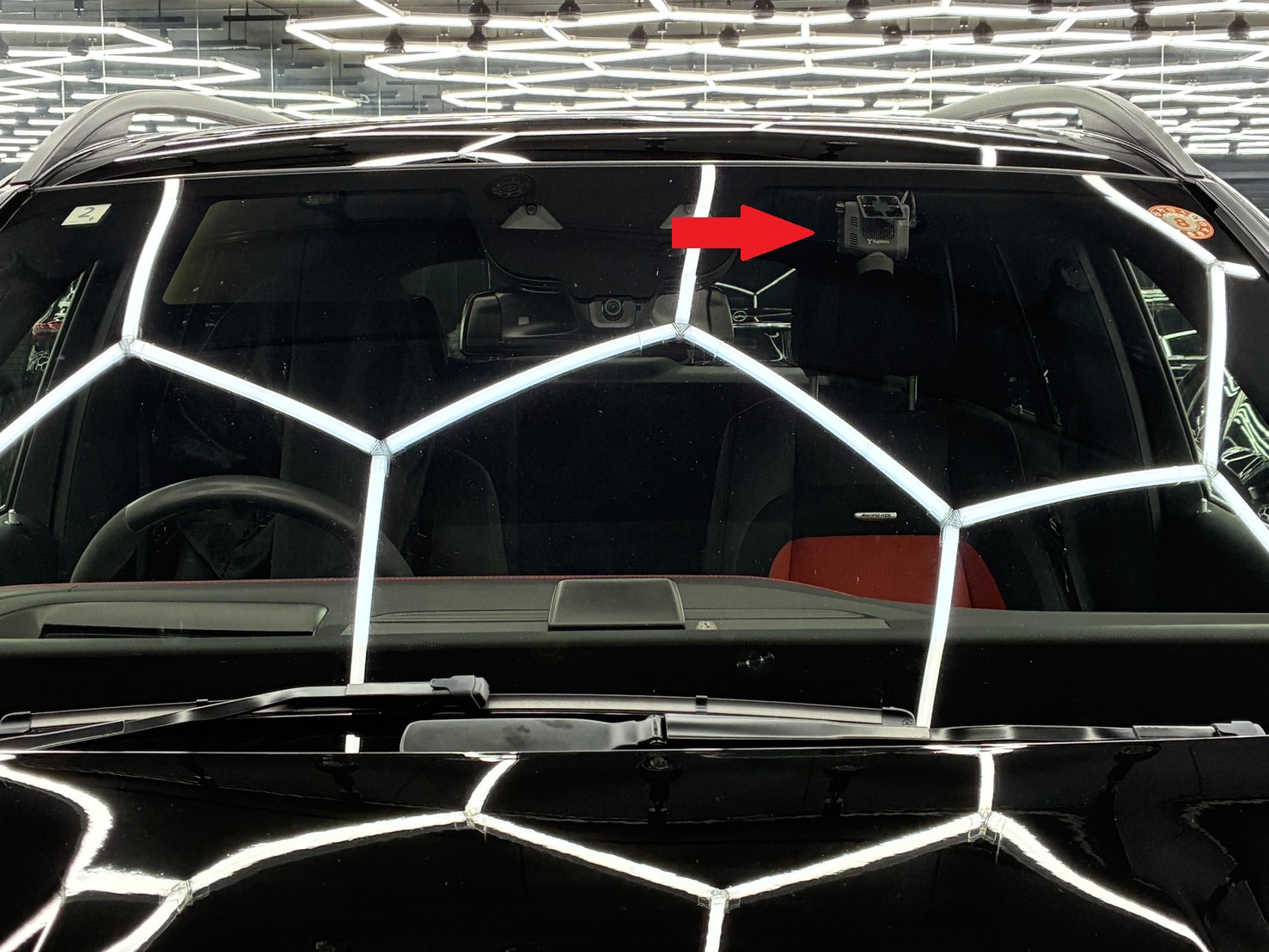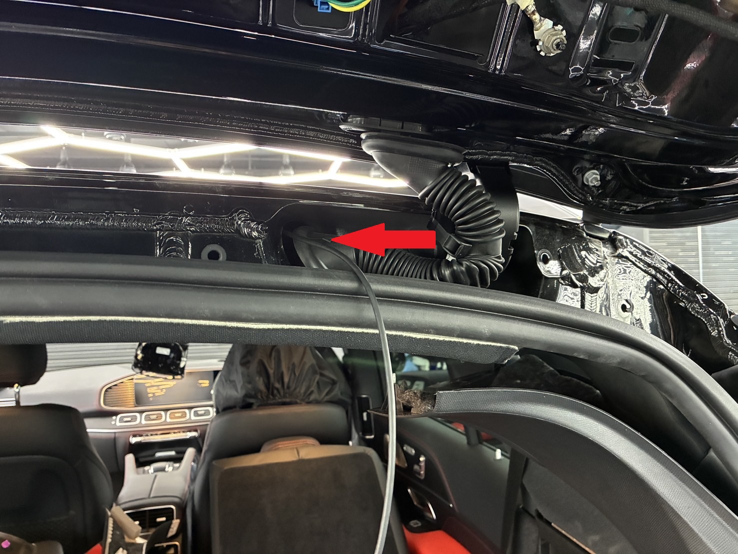 <天井からリアルームライトまで、配線処理をしリアカメラ取付>