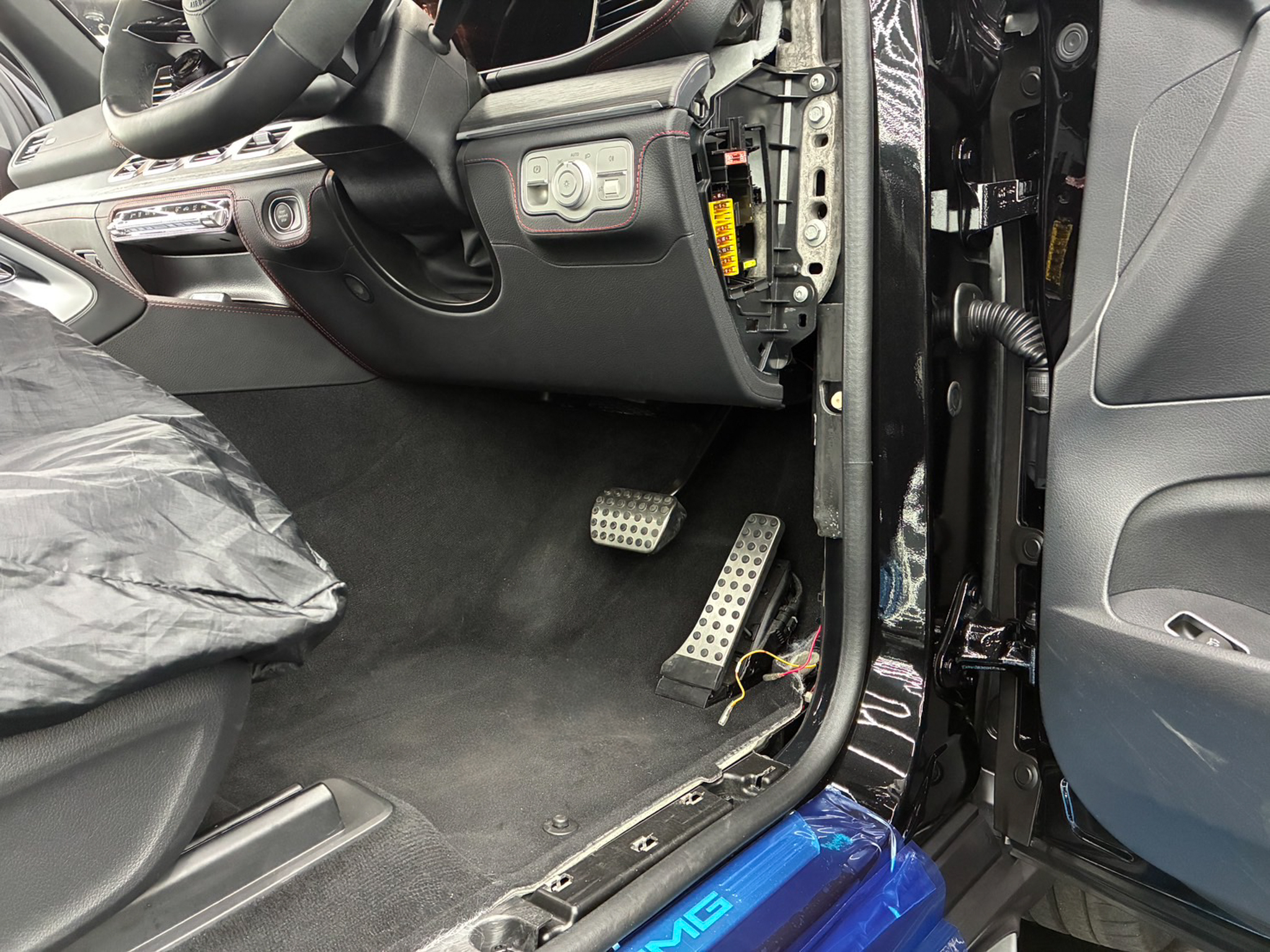 <運転席足元脱着・配線処理>