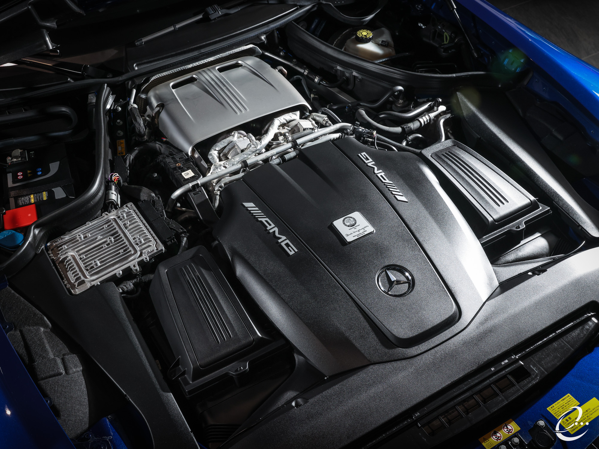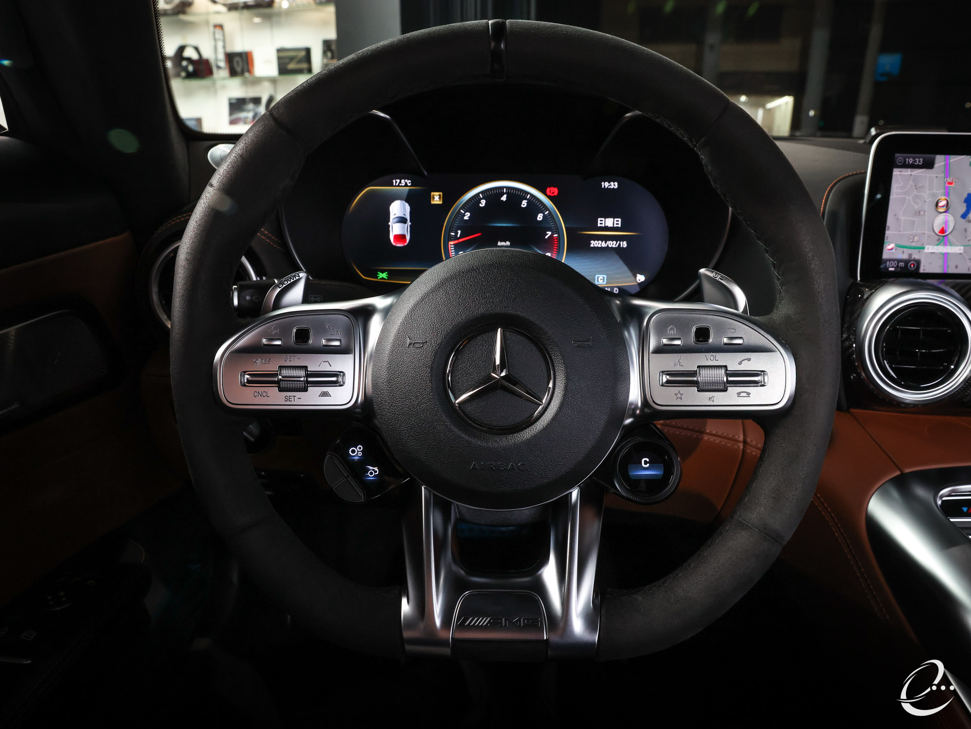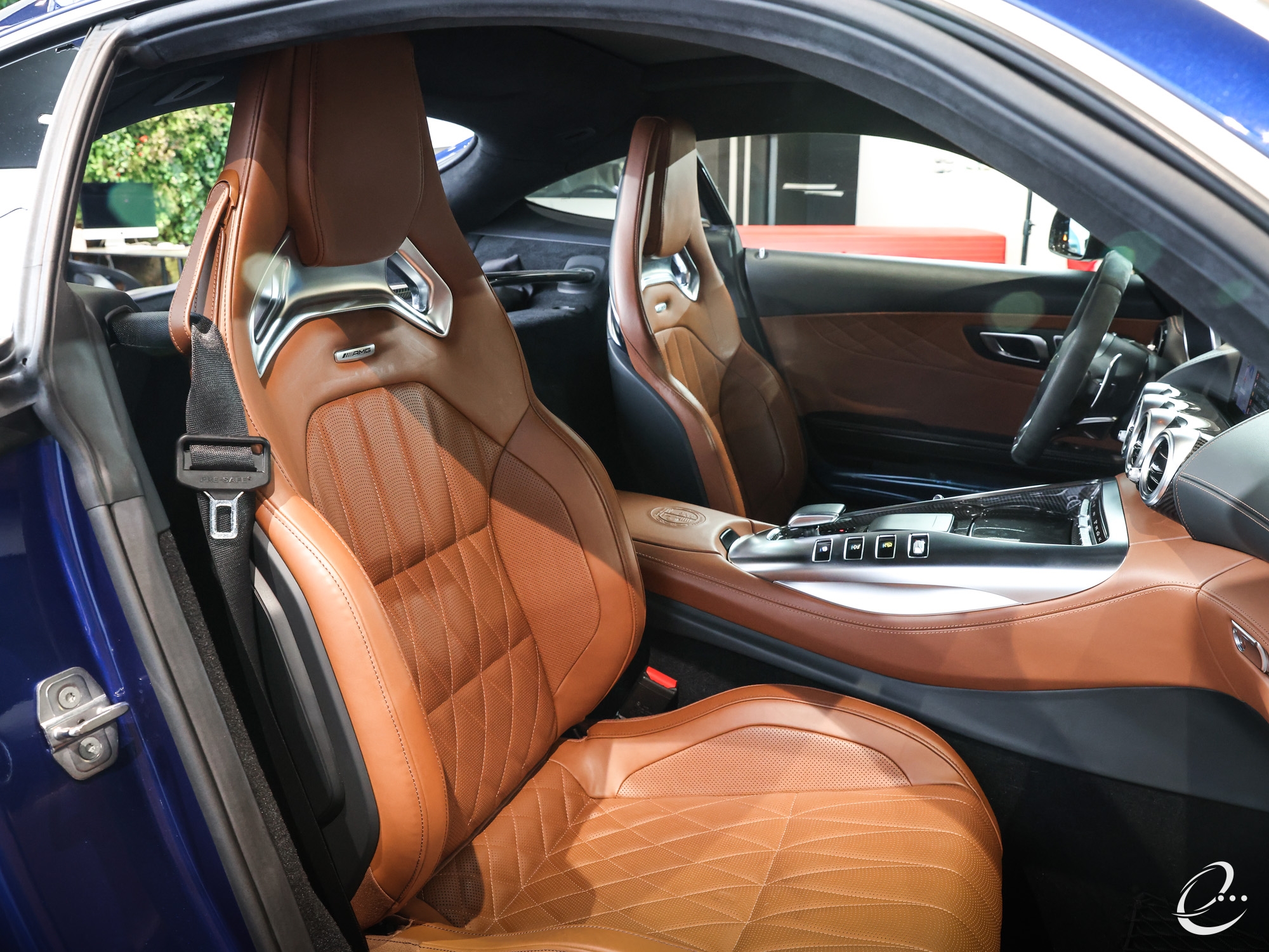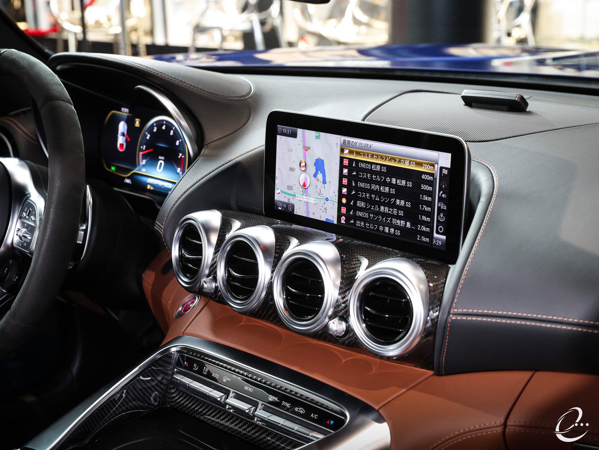 外装は純正メタリックブルーの「ブリリアントブルー」で、内装は「サドルブラウン」のAMGパフォーマンス・フルレザーダイヤモンドステッチシートを装備した左ハンドル車となります。