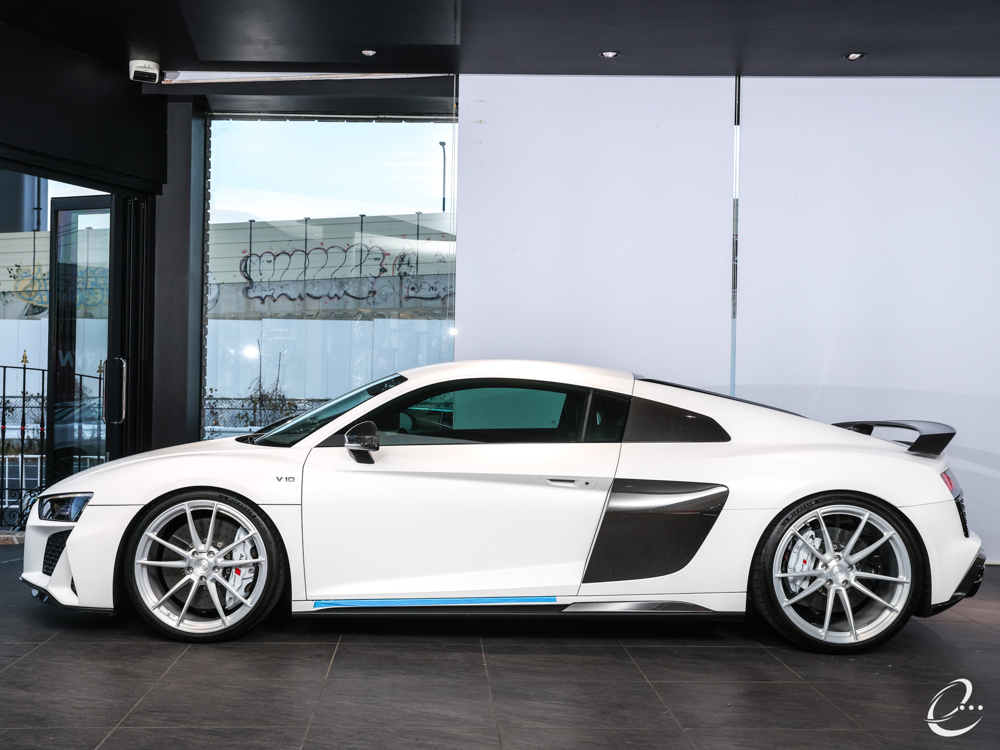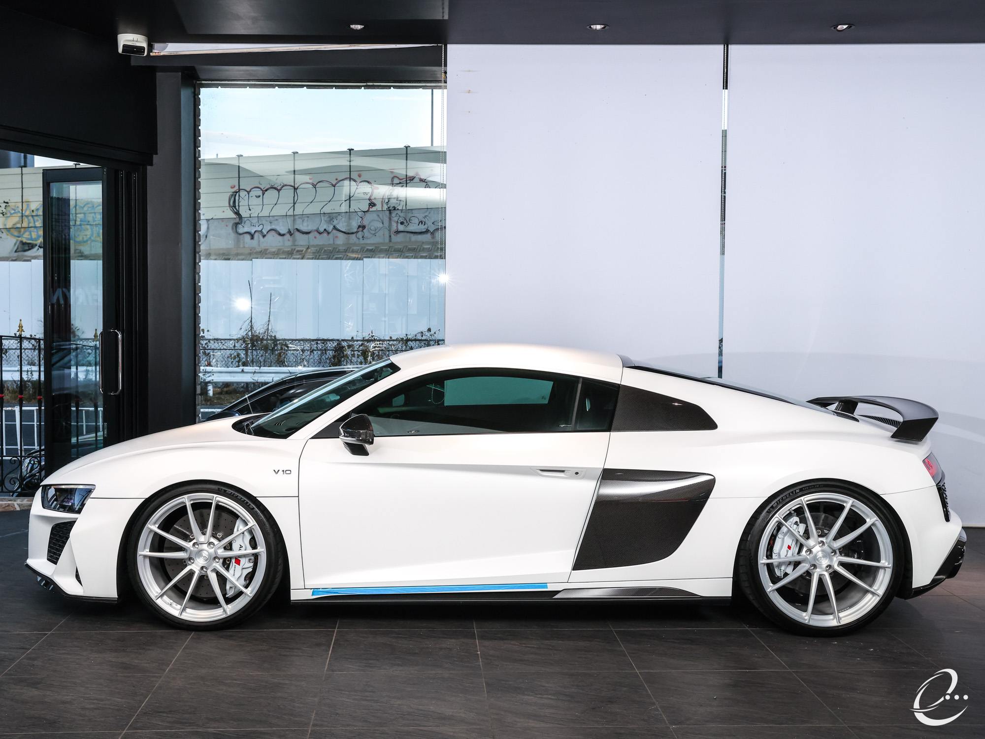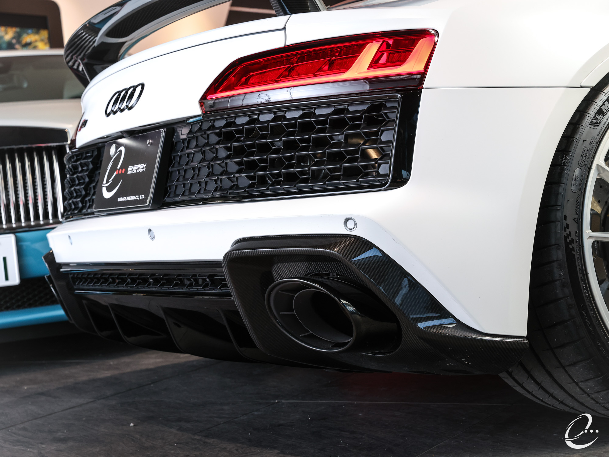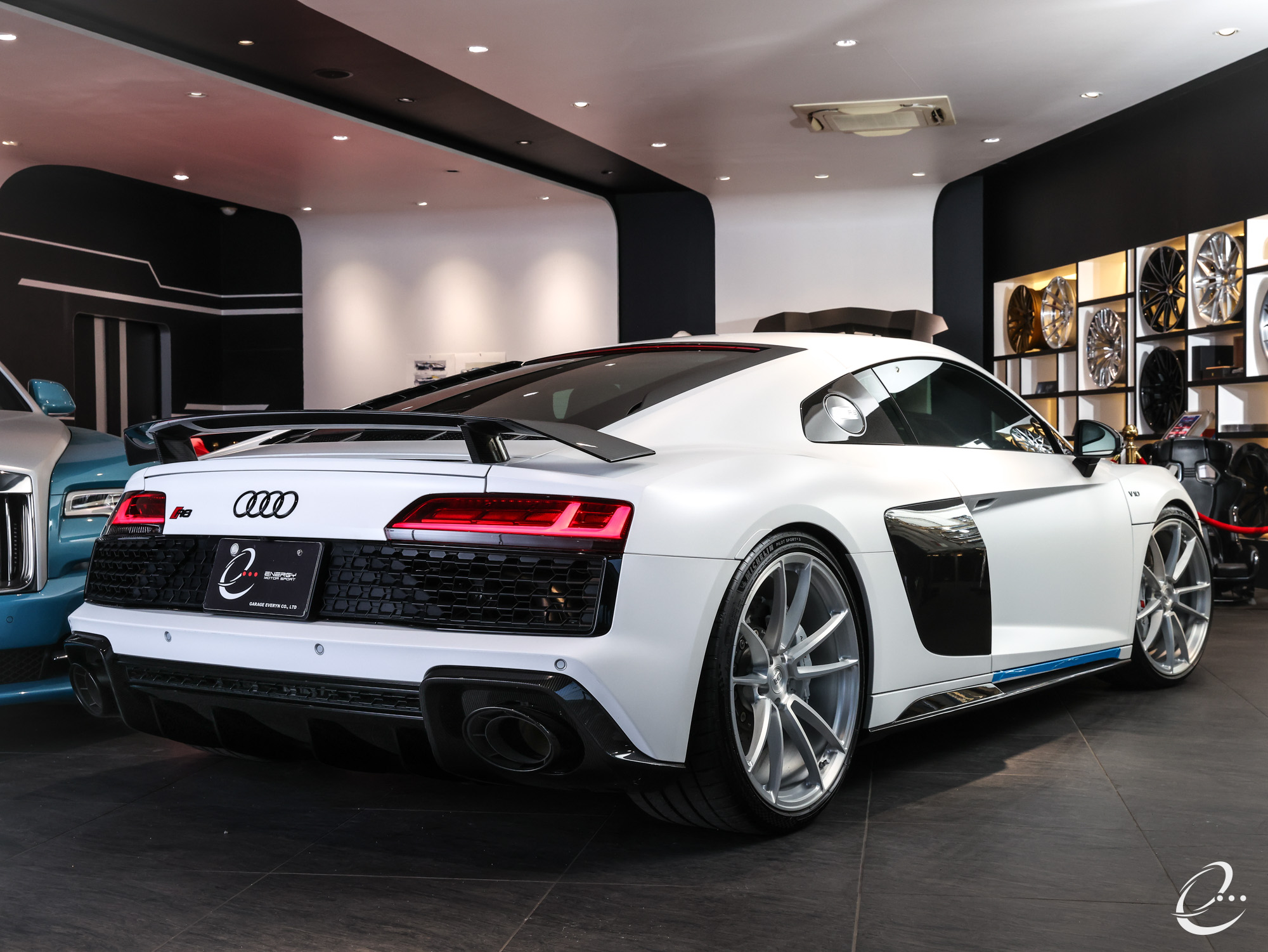 2月15日車両準備完了&画像アップのお知らせ2台目・・・AUDI R8 V10パフォーマンス フルカスタム OP686 マットホワイトボディー パワークラフト PPF&Fガラス KW HAS BC Forged鍛造ホイール カラードステッチング ダイナミックステアリング Bang & Olufsen サウンドシステム 拡張カーボン