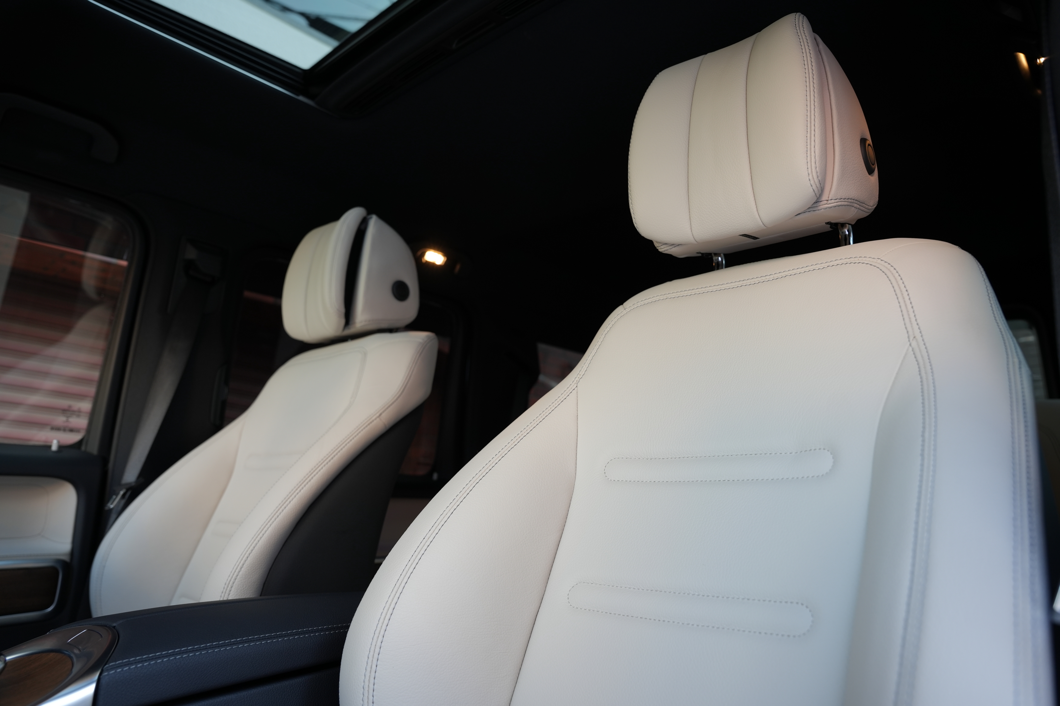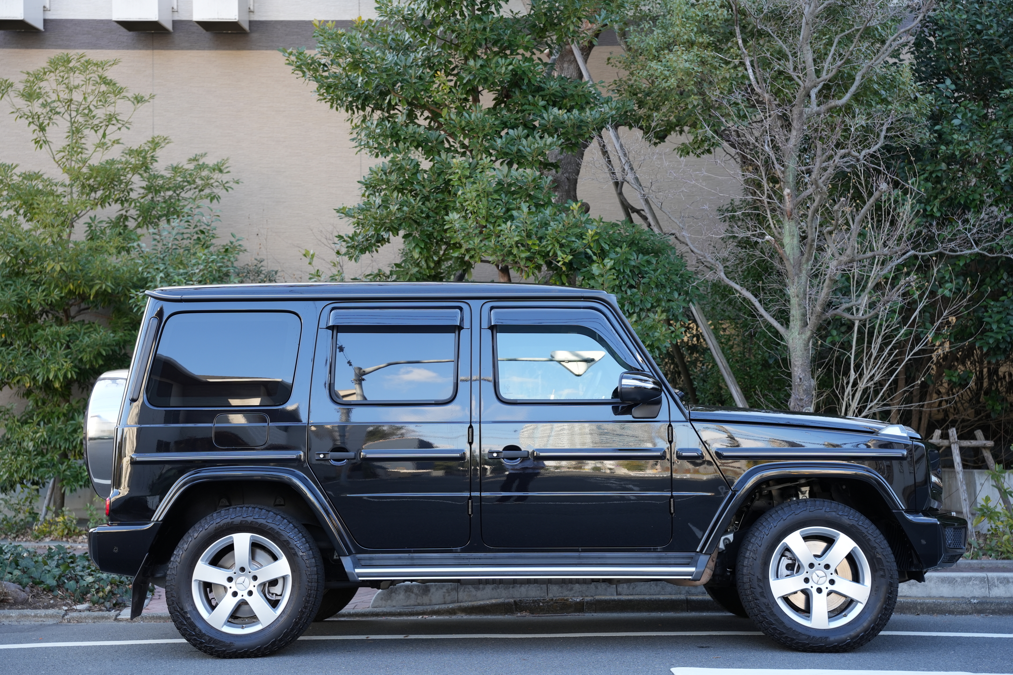 標準装備も充実しておりレーダーセーフティーパッケージ(アクティブブレーキアシスト、PRE-SAFE、アクティブレーンキーピングアシスト、ブラインドスポットアシスト、アクティブディスタンスアシスト・ディストロニック、CPA)/360℃カメラシステム(オフロードカメラ機能付き)/デイタイムランニングライト/マルチビームLEDヘッドライト/アダプティブハイビームアシスト/ステンレス製ランニングボード/プライバシーガラス(後席左右、ラゲッジルーム)/メモリー付きパワーシート(前席)/シートヒーター/マルチファンクションステアリング/電動パワーステアリング/レインセンサー/オートライト/12V電源ソケット(前席、ラゲッジルーム)/アンビエントライト(64色)/イモビライザー/3ゾーンクライメントコントロール/COMANDシステム(12.3インチワイドディスプレイ、コントローラー、タッチパッド、タッチコントロールボタン、音声認識機能)/Bluetooth/Apple CarPlayが装着されております。