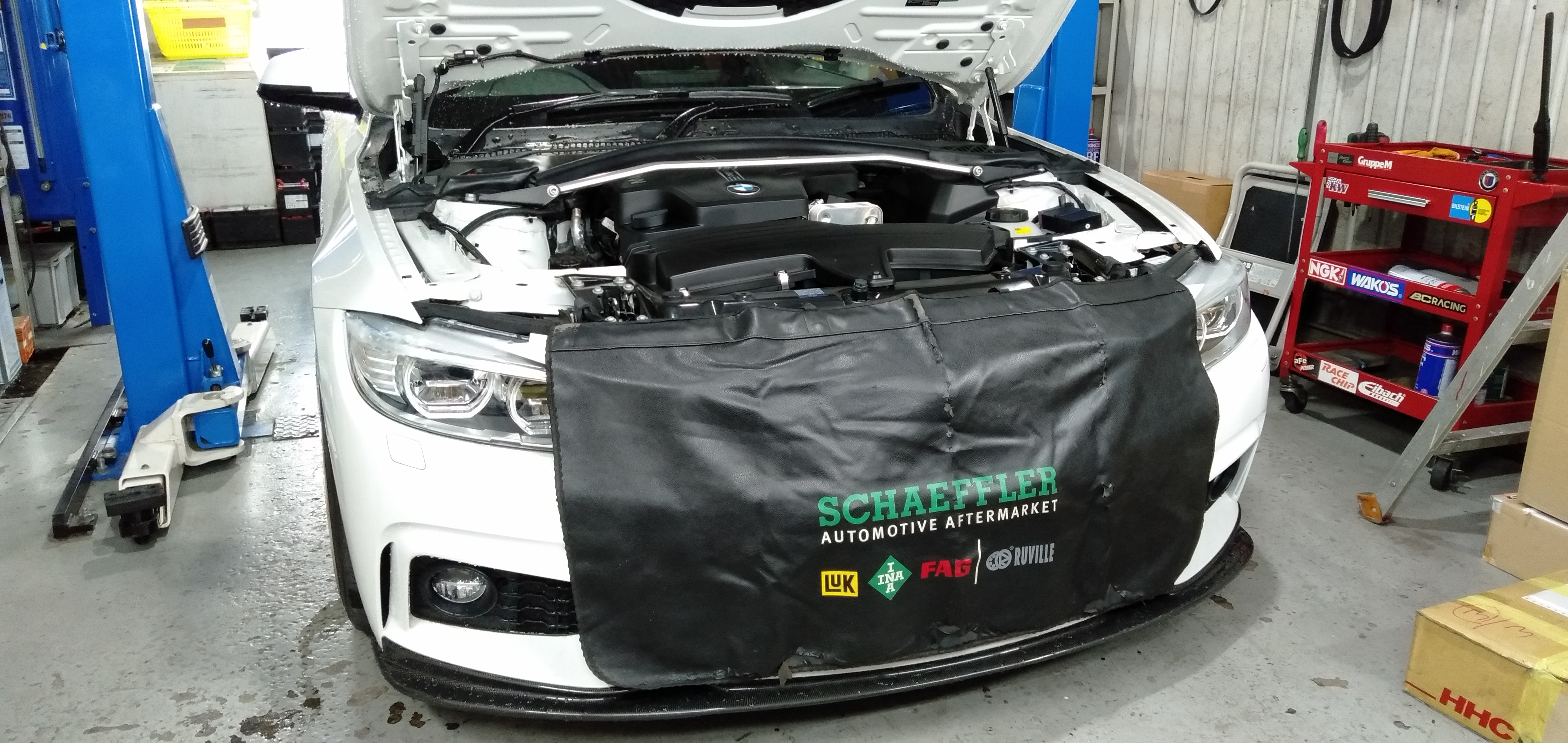 ご契約いただきました420iクーペですが、先ほどピットに搬入させていただきました。 これより納車前の点検整備作業を開始させていただきます。 前オーナー様は大切に乗っておられたというのがよく分かる車両です。 これから、エンジンオイル、ブレーキオイル、冷却水、オイルエレメント、エアーエレメント、 エアコンマイクロフィルター、バッテリー、ワイパーブレードセットなどの消耗部品を交換していきます。 順調に作業が進みますと、明日には完了する予定です。 それではお納車を楽しみにお待ち下さいませ!! by近藤