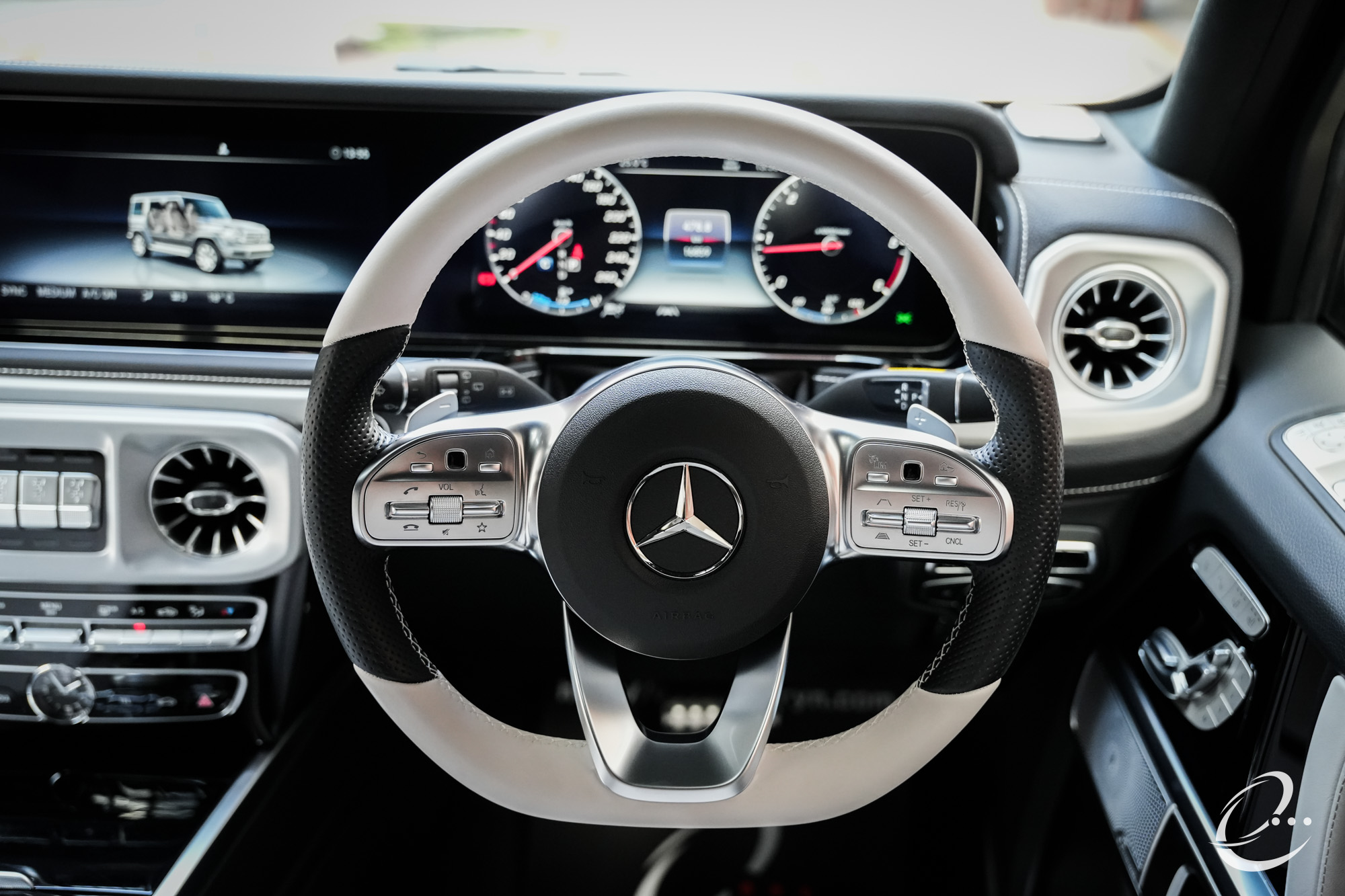 標準装備も充実しておりレーダーセーフティーパッケージ(アクティブブレーキアシスト、PRE-SAFE、アクティブレーンキーピングアシスト、ブラインドスポットアシスト、アクティブディスタンスアシスト・ディストロニック、CPA)/360℃カメラシステム(オフロードカメラ機能付き)/デイタイムランニングライト/マルチビームLEDヘッドライト/アダプティブハイビームアシスト/ステンレス製ランニングボード/プライバシーガラス(後席左右、ラゲッジルーム)/メモリー付きパワーシート(前席)/シートヒーター/マルチファンクションステアリング/電動パワーステアリング/レインセンサー/オートライト/12V電源ソケット(前席、ラゲッジルーム)/アンビエントライト(64色)/イモビライザー/3ゾーンクライメントコントロール/COMANDシステム(12.3インチワイドディスプレイ、コントローラー、タッチパッド、タッチコントロールボタン、音声認識機能)/Bluetooth/Apple CarPlayが装着されております。