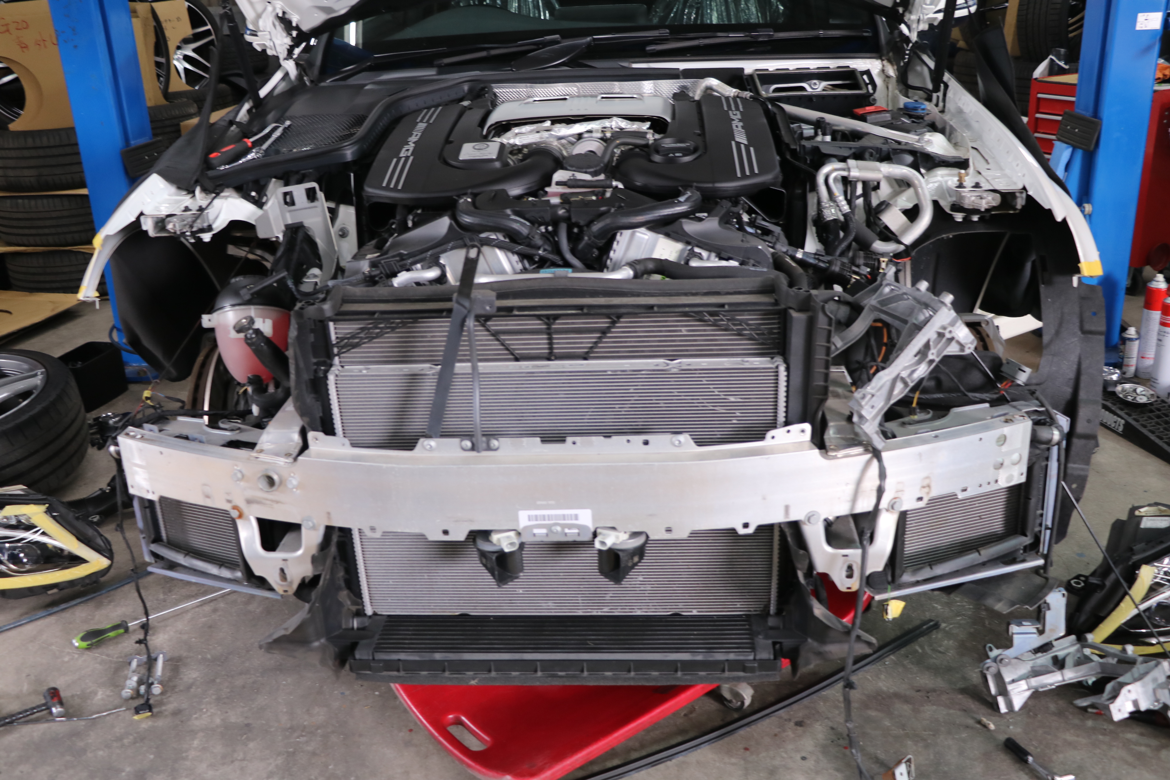 フロントバンパーを脱着して分解していきます。