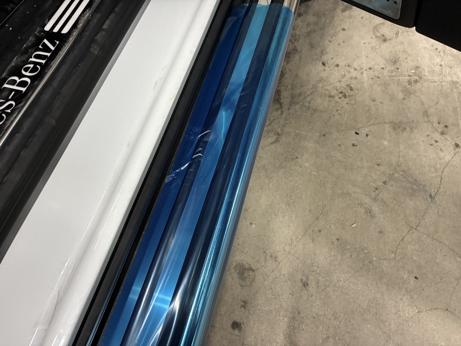 運転席・助手席サイドステップに養生テープを貼り、作業を行って参ります。