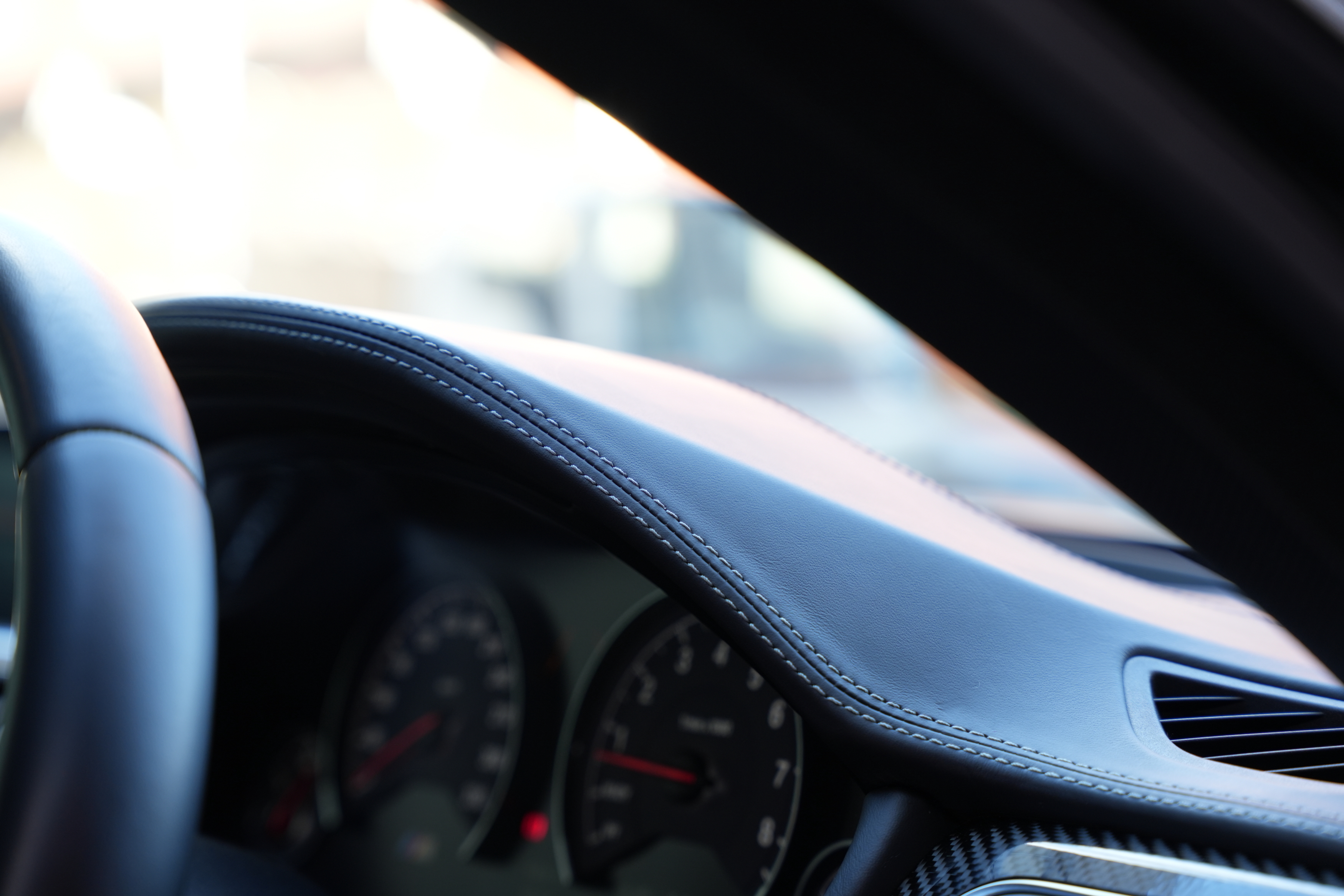 内装についてはメーカーオプションとなるフルレザーメリノのブラックレザーシート/シートヒーターに加え、カーボンインテリアパネルが完備されております。
