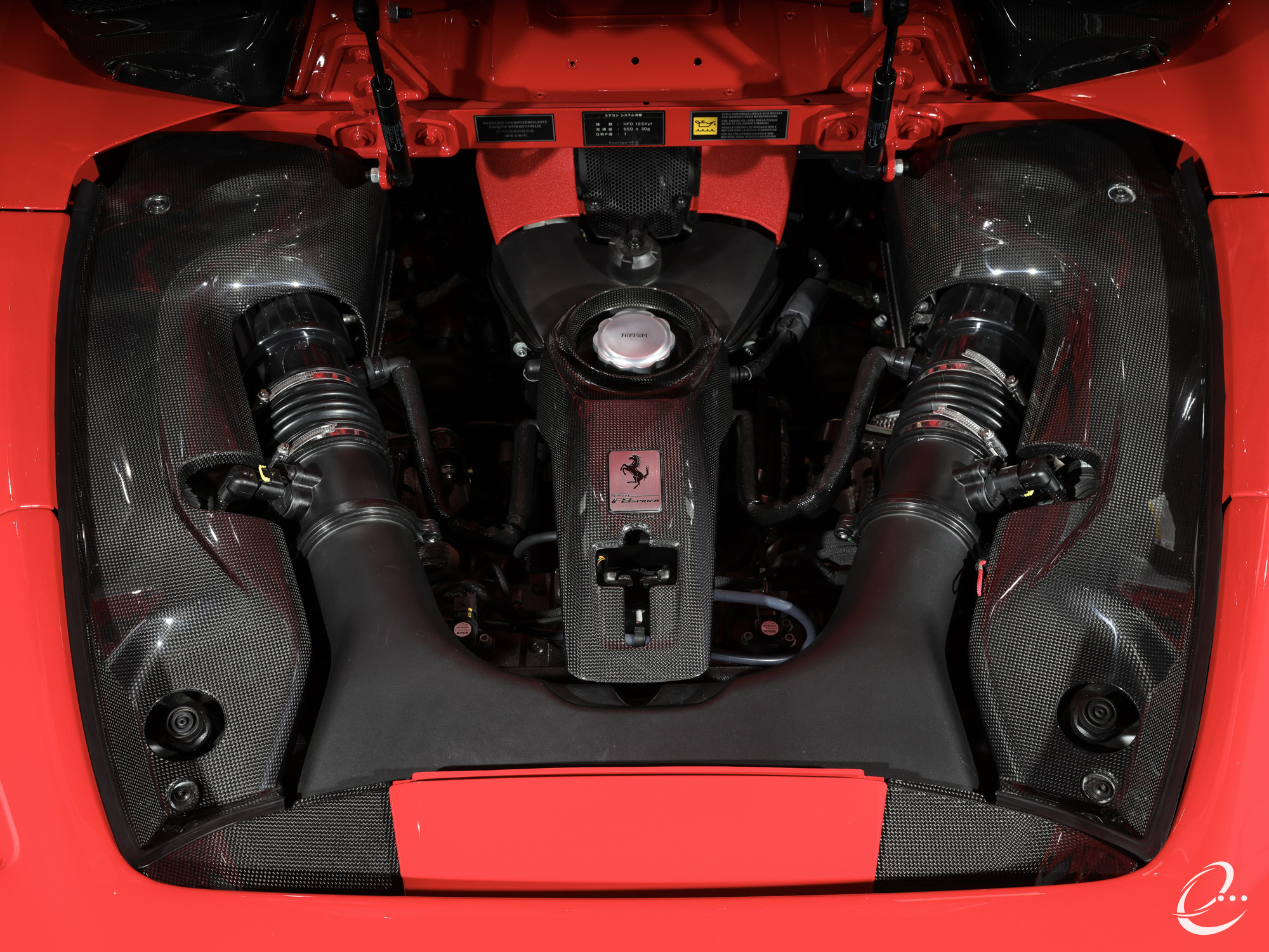 フェラーリ F8スパイダーには3.9リッターV8ツインターボエンジンを搭載しており、